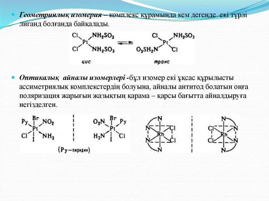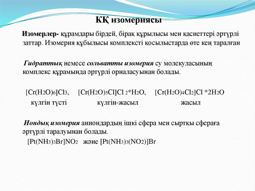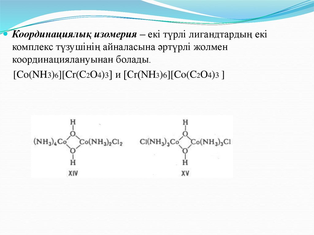 заттар. Изомерия құбылысы комплексті қосылыстарда өте кең таралған