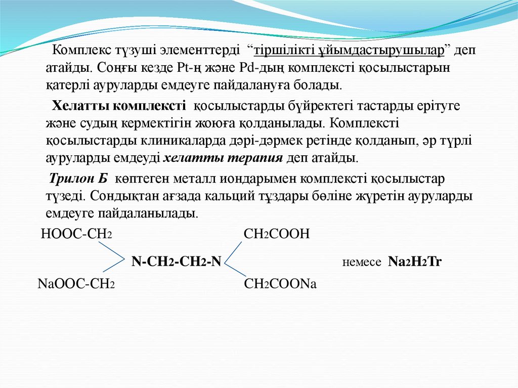 Трилон Б көптеген металл иондарымен комплексті қосылыстар