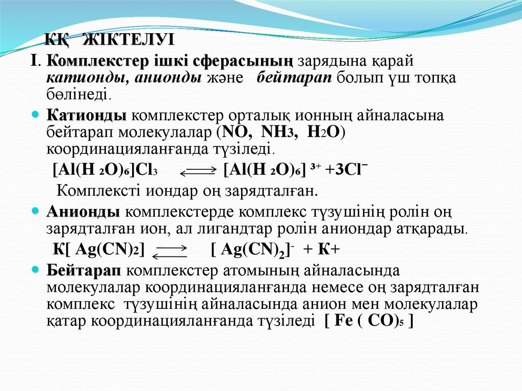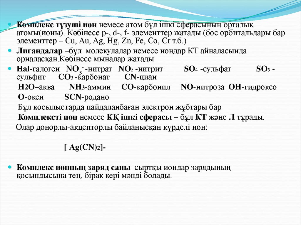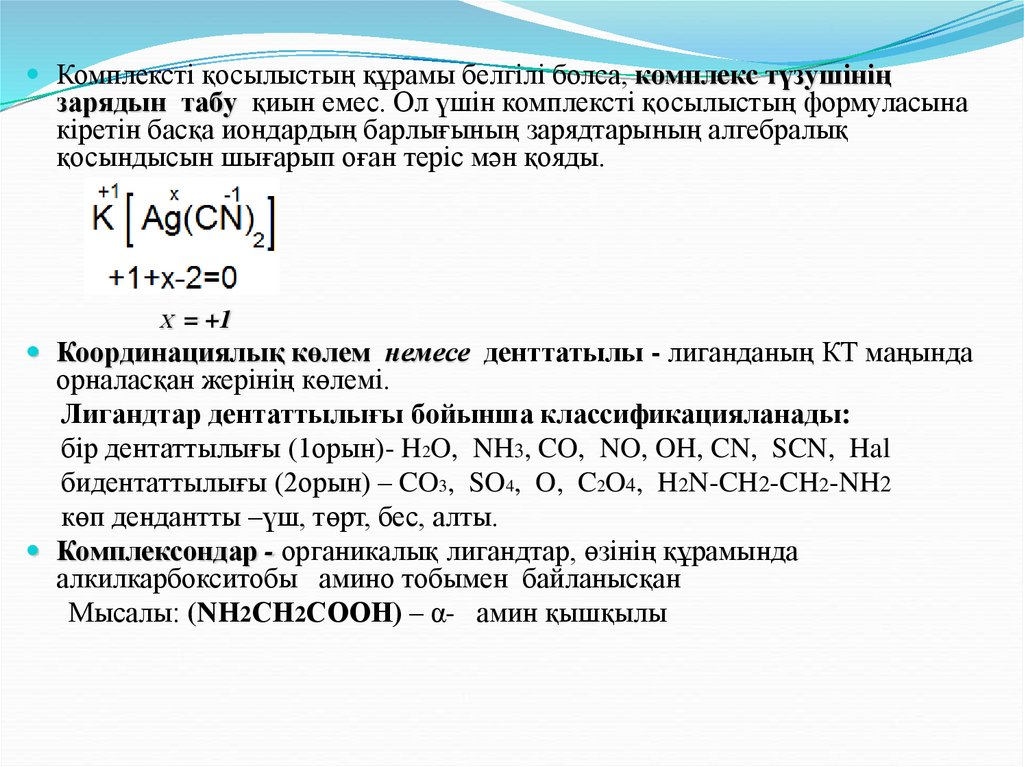 [ Аg(CN)2] Комплекс ионның заряд саны сыртқы иондар зарядының
