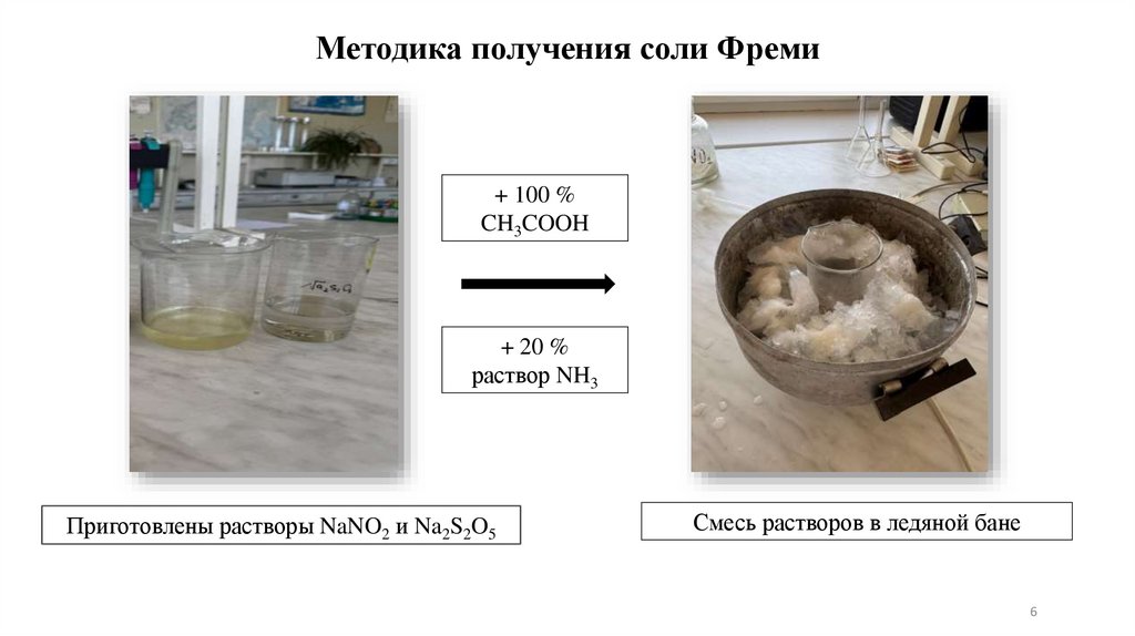 • Подобрать оптимальную методику синтеза соли Фреми.