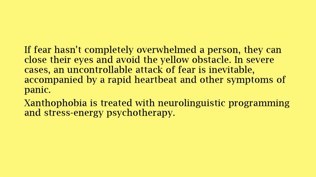 If fear hasn't completely overwhelmed a person, they canclose their eyes and avoid the yellow obstacle. In severe