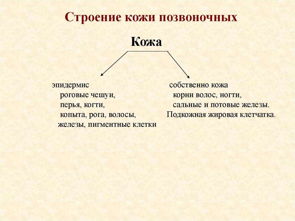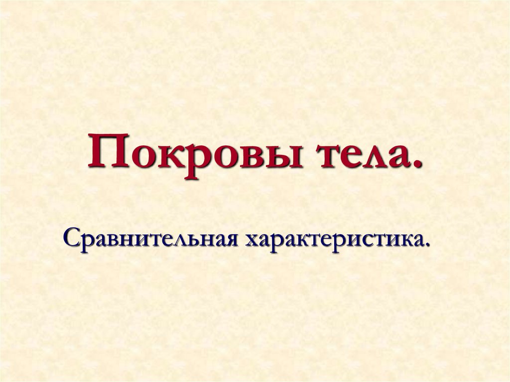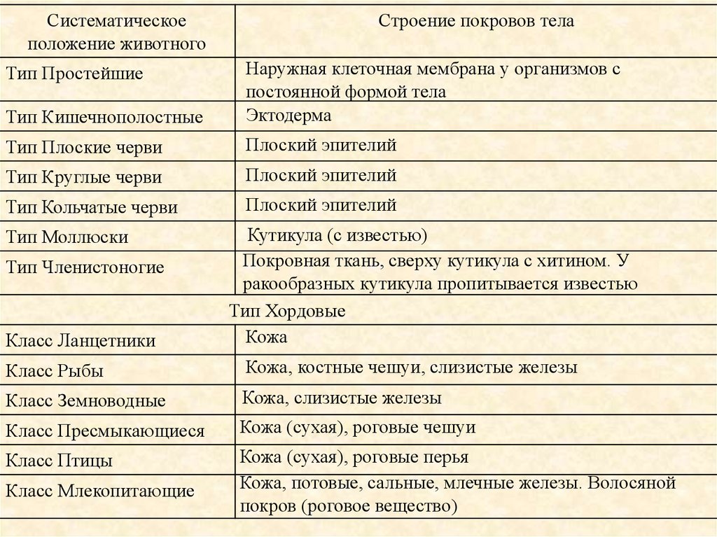 покров двухслойный: эпидермис и собственно кожа;эпидермис многослойный (нижний слой – живые, верхний