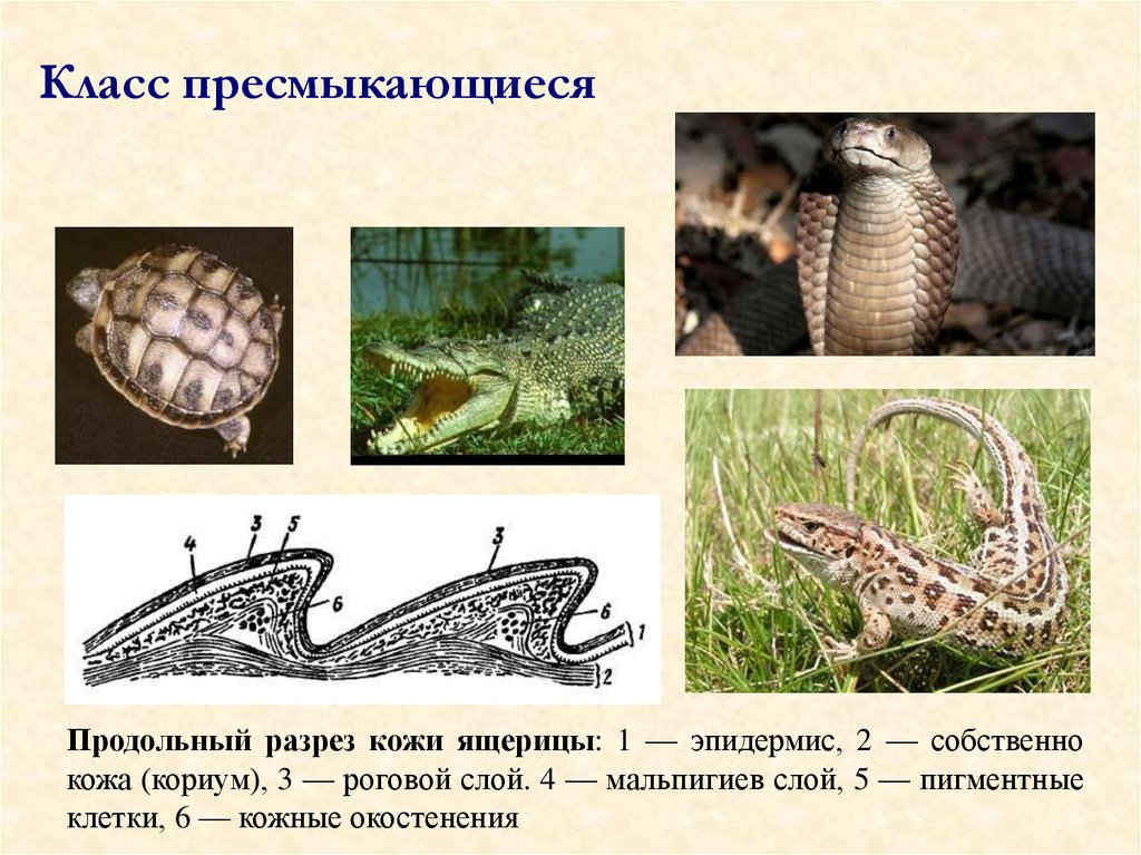 Класс пресмыкающиесяПродольный разрез кожи ящерицы: 1 — эпидермис, 2 — собственно