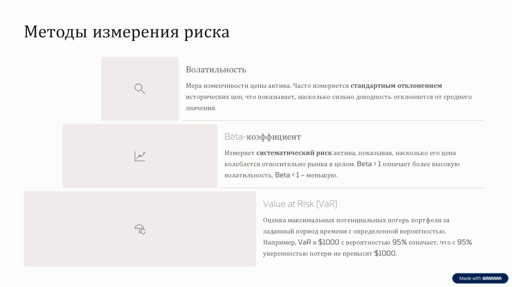 Например, VaR в $1000 с вероятностью 95% означает, что с 95%