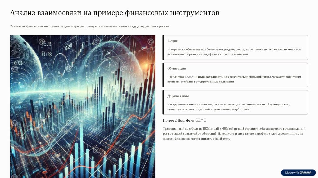 Анализ взаимосвязи на примере финансовых инструментовРазличные финансовые инструменты демонстрируют разную степень взаимосвязи между доходностью и риском.