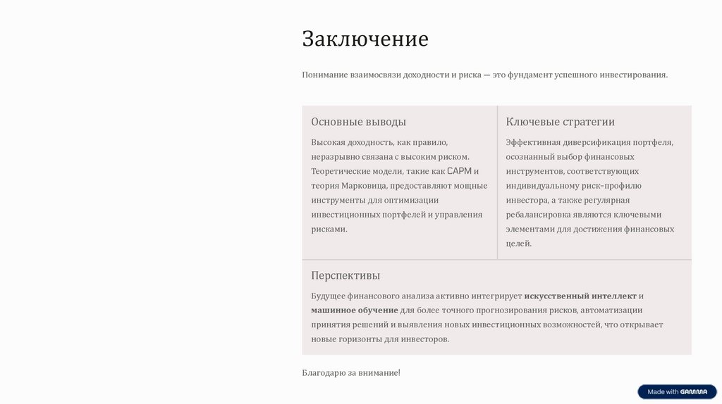 ЗаключениеПонимание взаимосвязи доходности и риска — это фундамент успешного инвестирования.