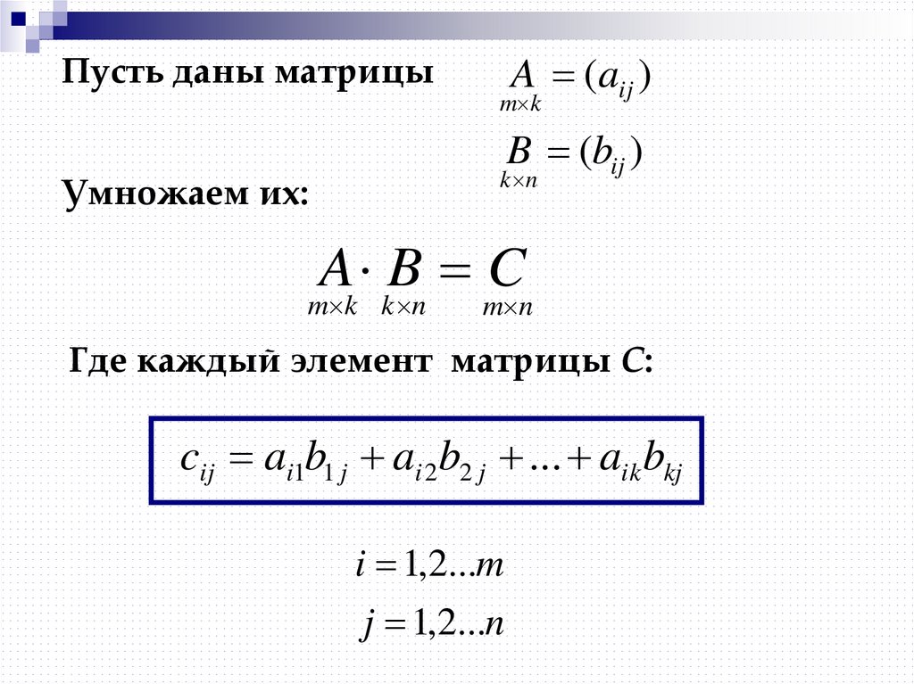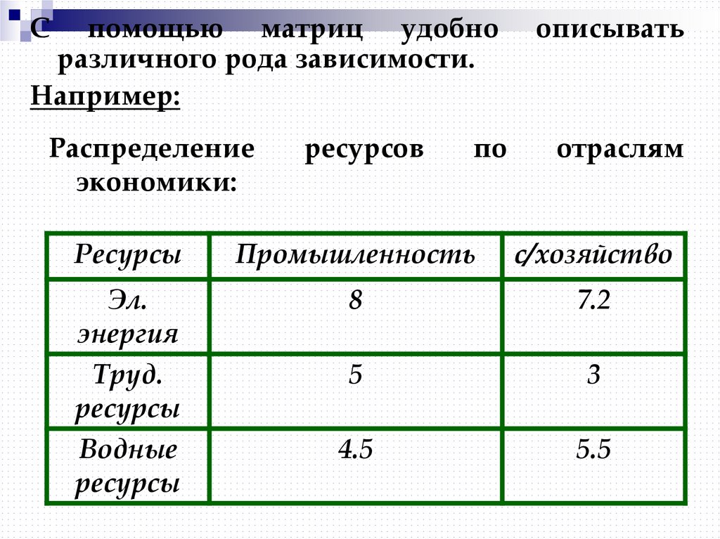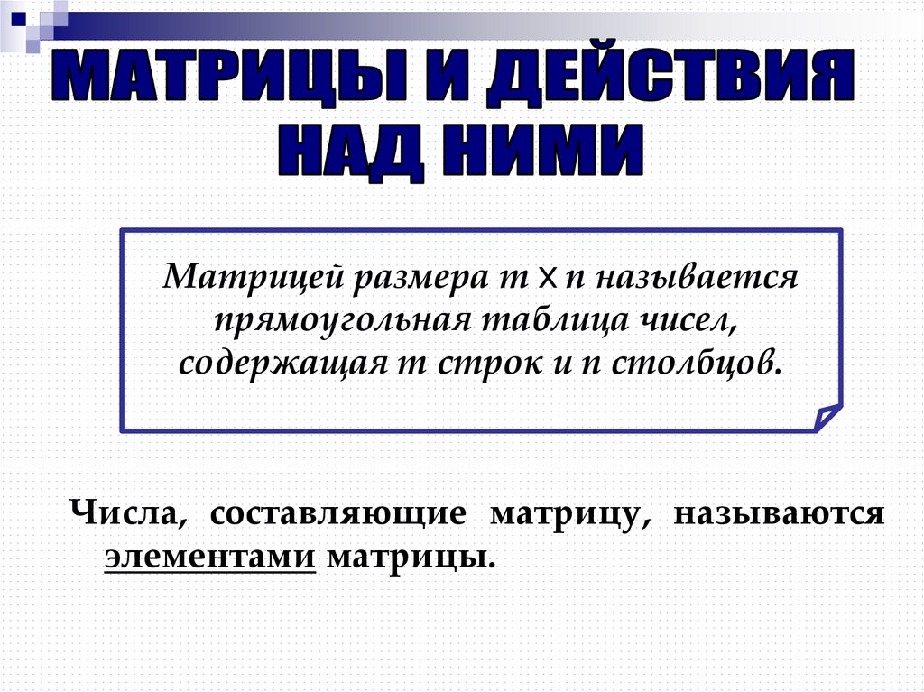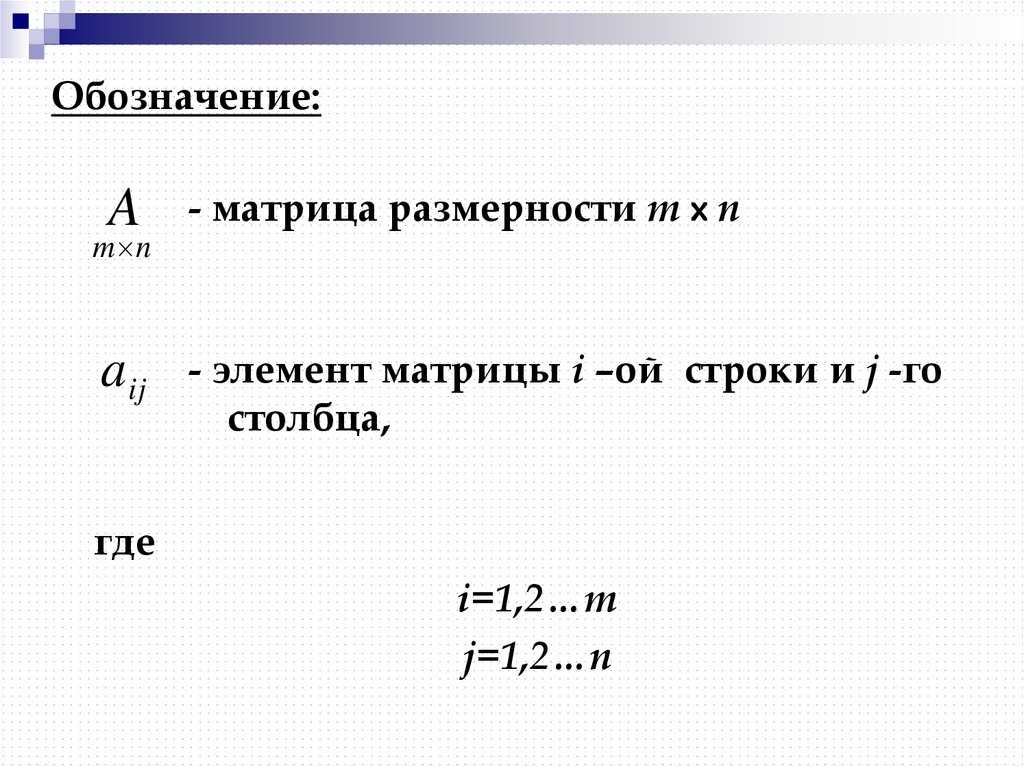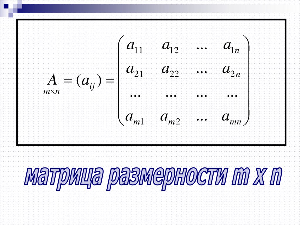 Матрицей размера m x n называетсяпрямоугольная таблица чисел,