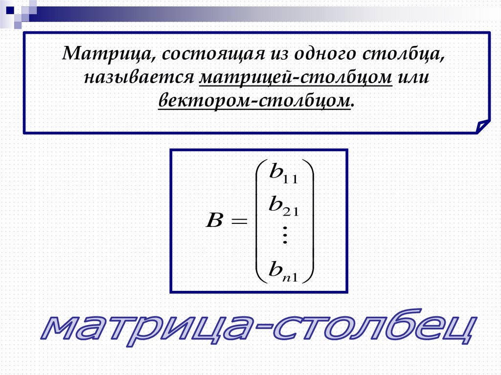 Матрица, состоящая из одного столбца,называется матрицей-столбцом или
