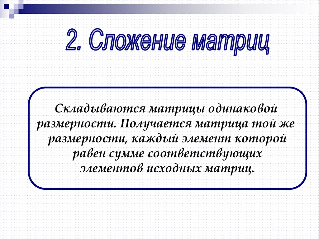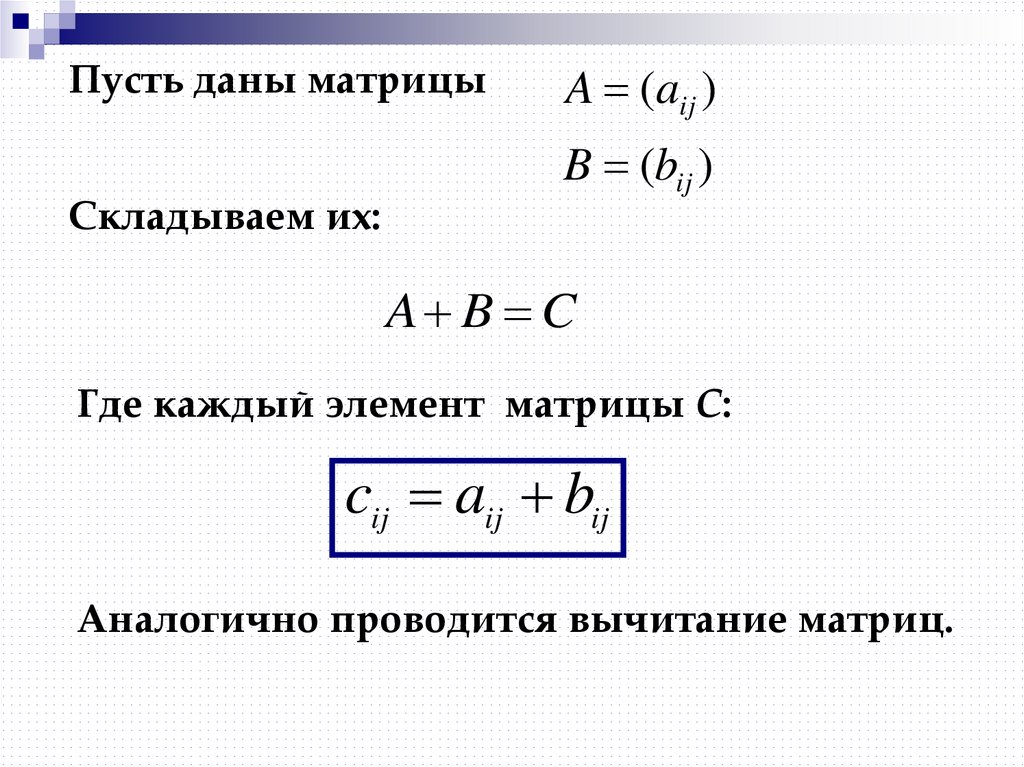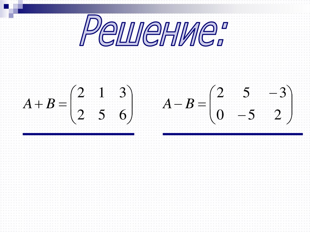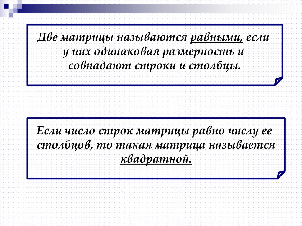 Две матрицы называются равными, еслиу них одинаковая размерность и