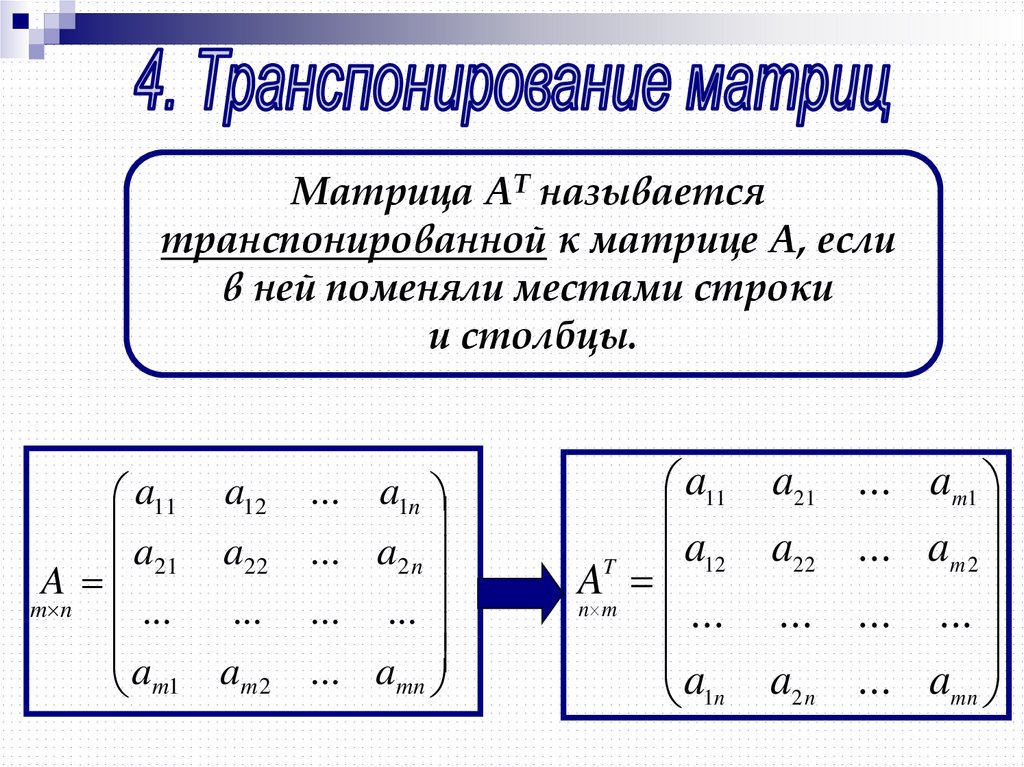 • перестановка строк (столбцов) местами;• исключение из матрицы строк (столбцов),