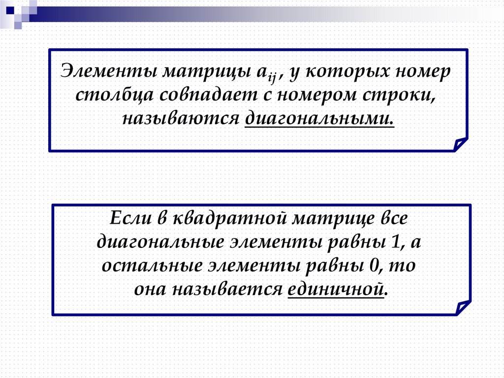 Элементы матрицы aij , у которых номерстолбца совпадает с номером строки,