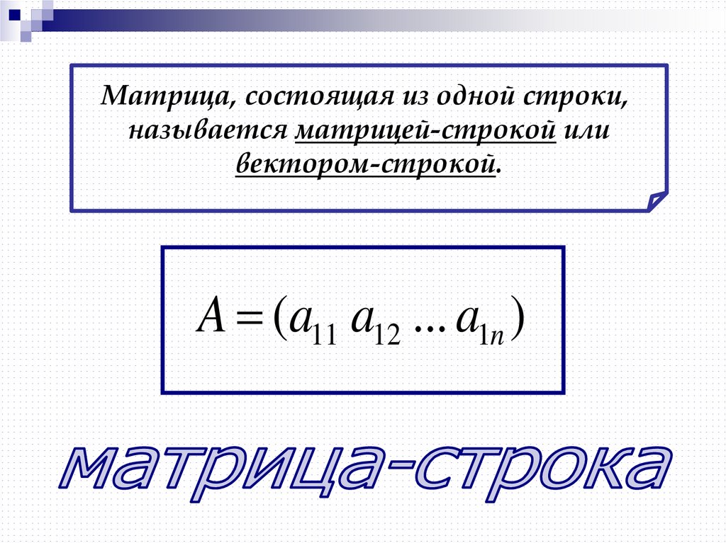 Матрица, состоящая из одной строки,называется матрицей-строкой или