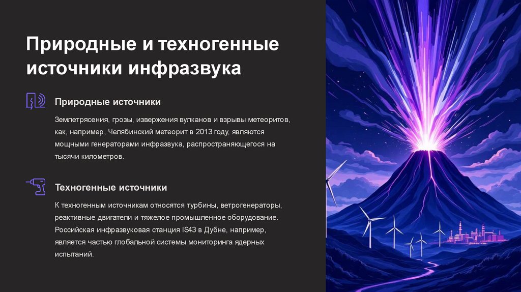 Землетрясения, грозы, извержения вулканов и взрывы метеоритов,