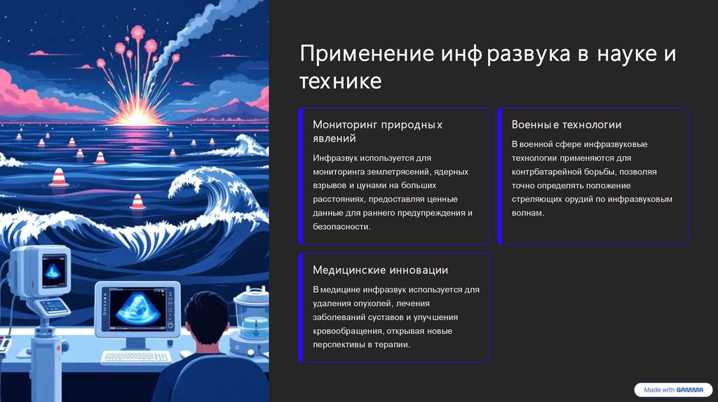поглощении атмосферой. Благодаря этим свойствам инфразвук легко