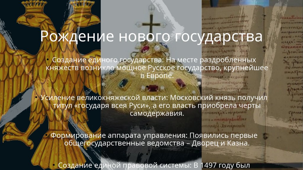 Рождение нового государства• Создание единого государства: На месте раздробленных