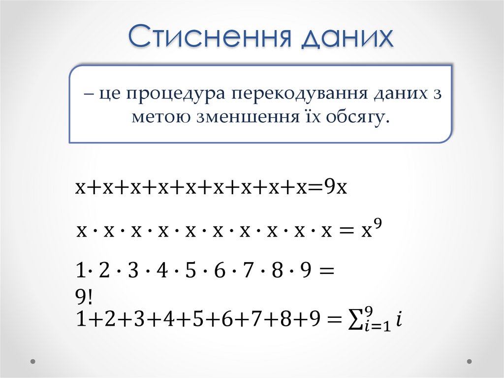 Стиснення даних– це процедура перекодування даних з