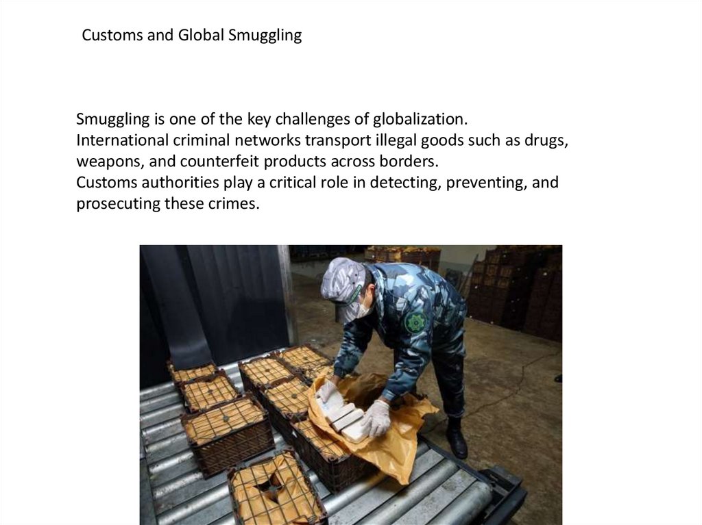 Customs and Global SmugglingSmuggling is one of the key challenges of globalization.