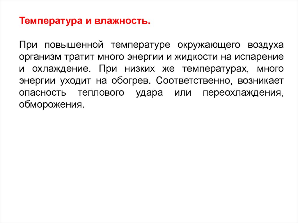 Температура и влажность.При повышенной температуре окружающего воздуха