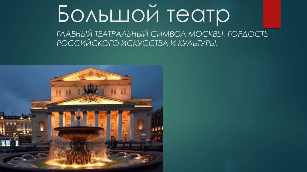 ГЛАВНЫЙ ТЕАТРАЛЬНЫЙ СИМВОЛ МОСКВЫ, ГОРДОСТЬРОССИЙСКОГО ИСКУССТВА И КУЛЬТУРЫ.