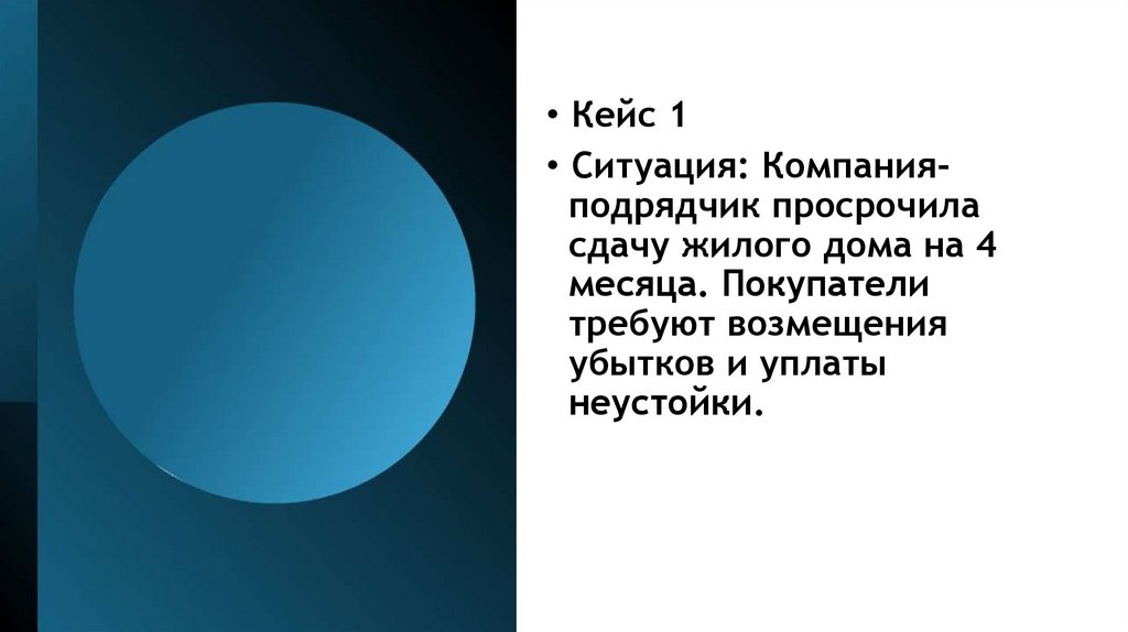 • Кейс 1• Ситуация: Компанияподрядчик просрочила