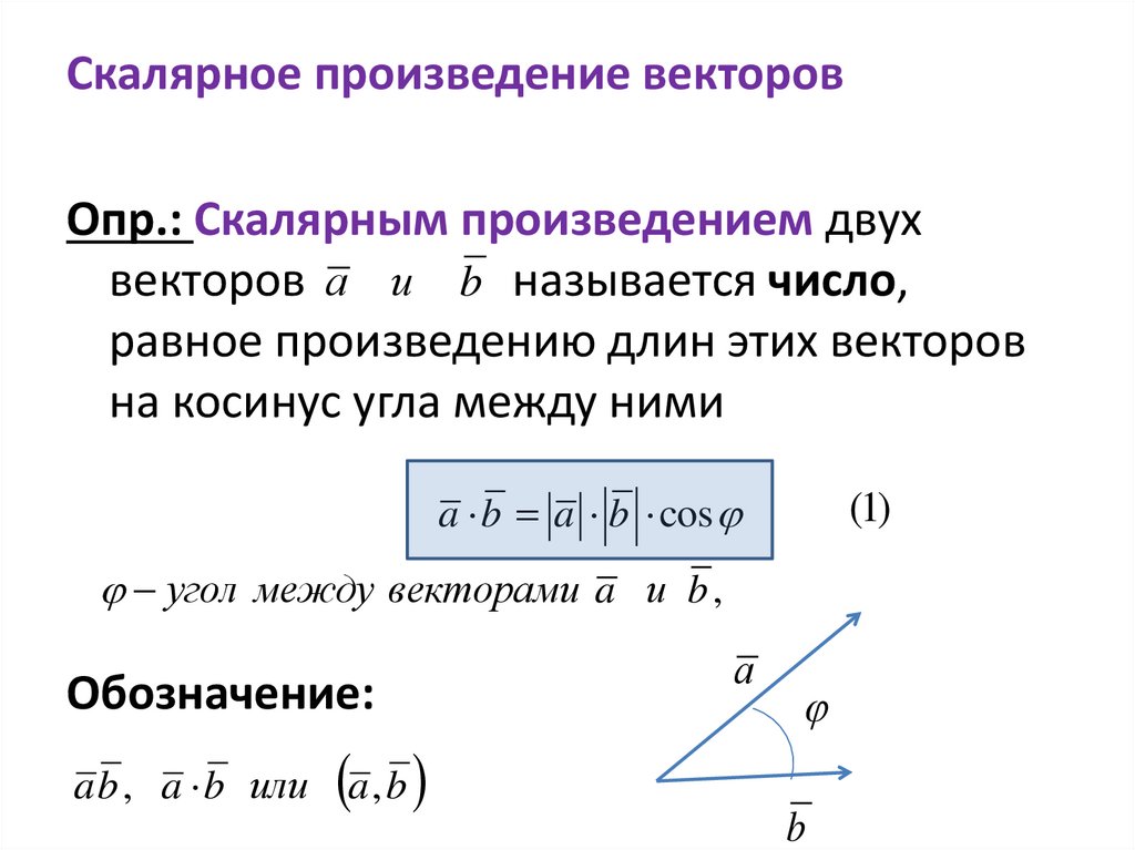 Скалярное произведение векторовОпр.: Скалярным произведением двух
