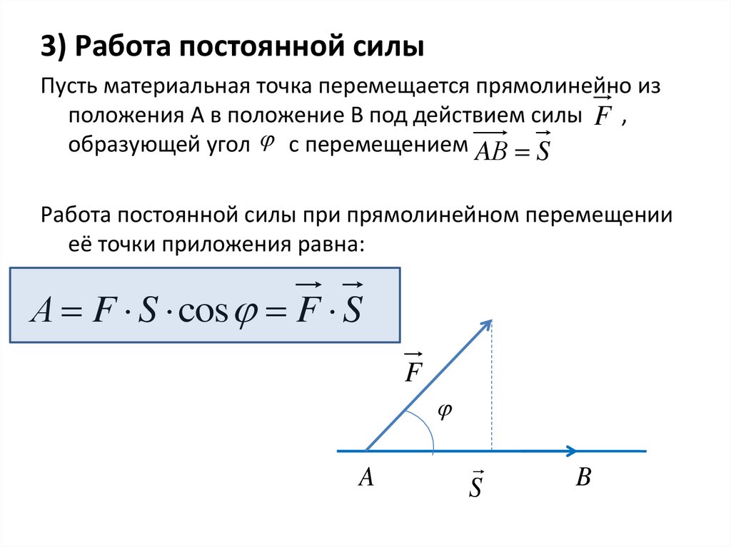 3) Работа постоянной силыПусть материальная точка перемещается прямолинейно из