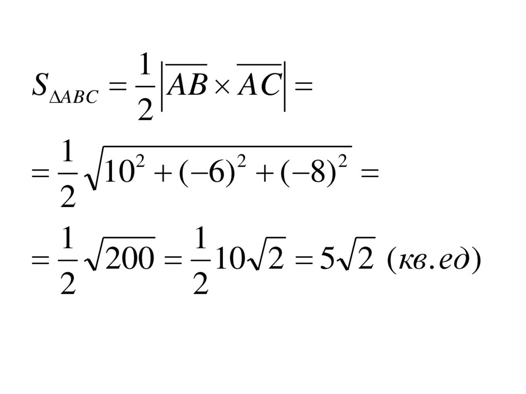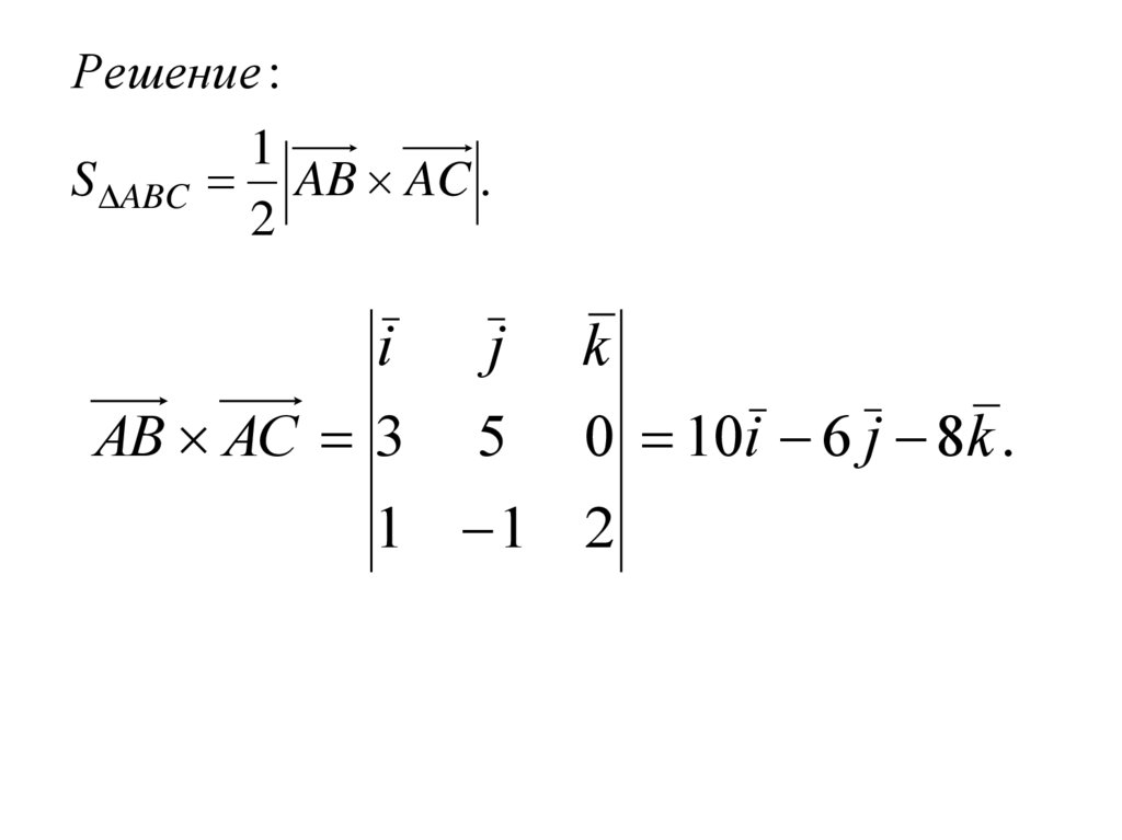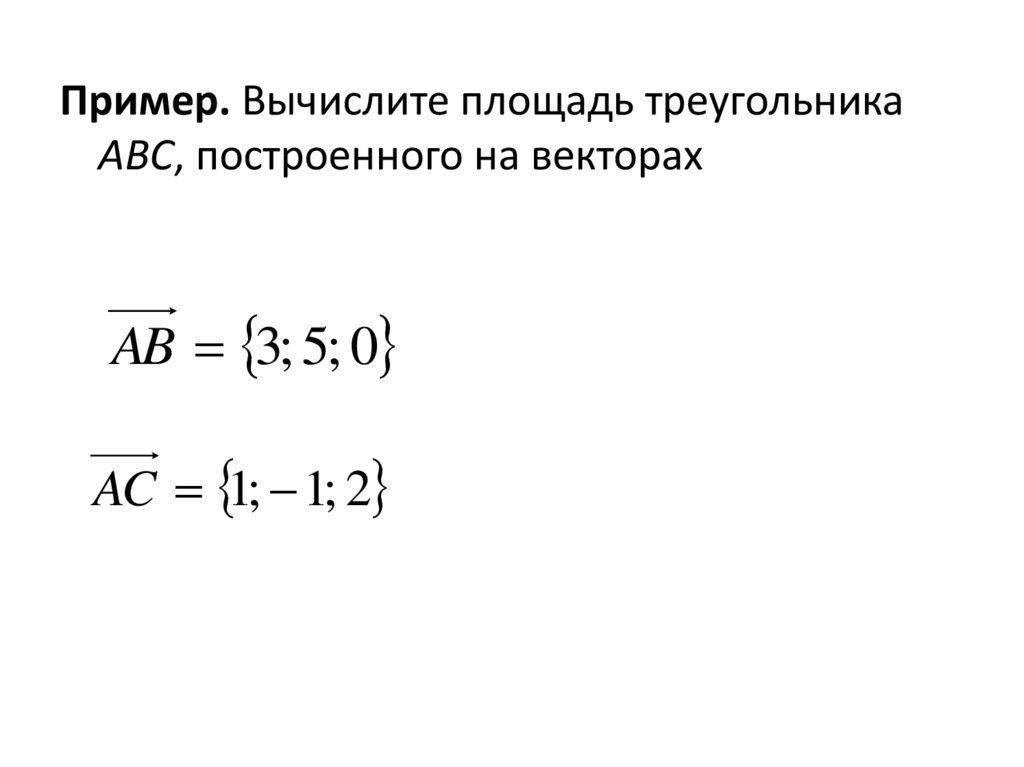 Пример. Вычислите площадь треугольникаАВС, построенного на векторах