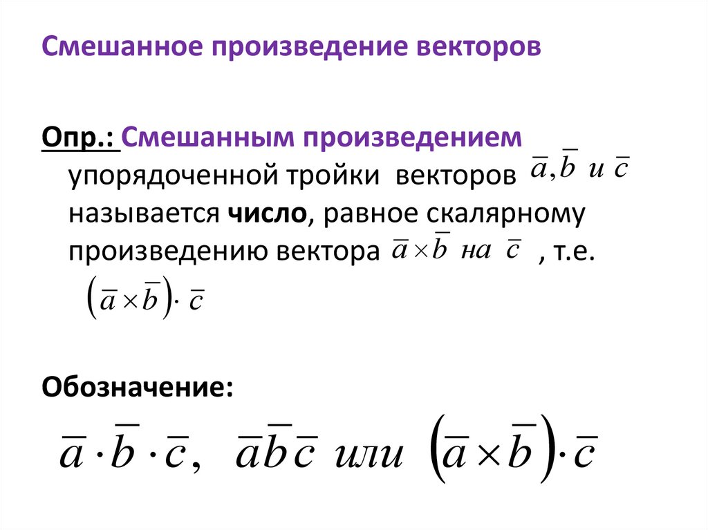 Смешанное произведение векторовОпр.: Смешанным произведением