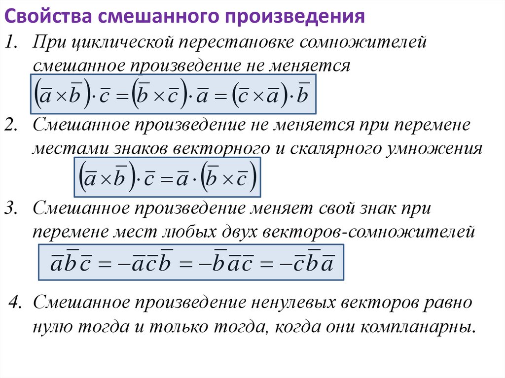 Свойства смешанного произведения1. При циклической перестановке сомножителей