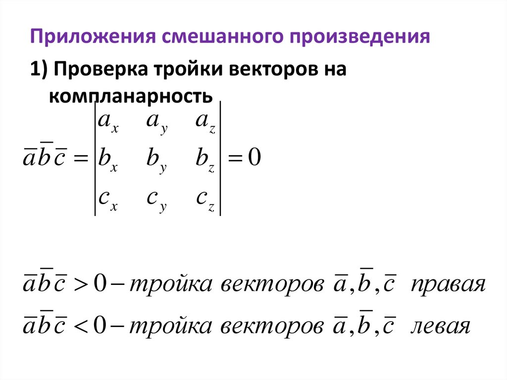 Приложения смешанного произведения1) Проверка тройки векторов на