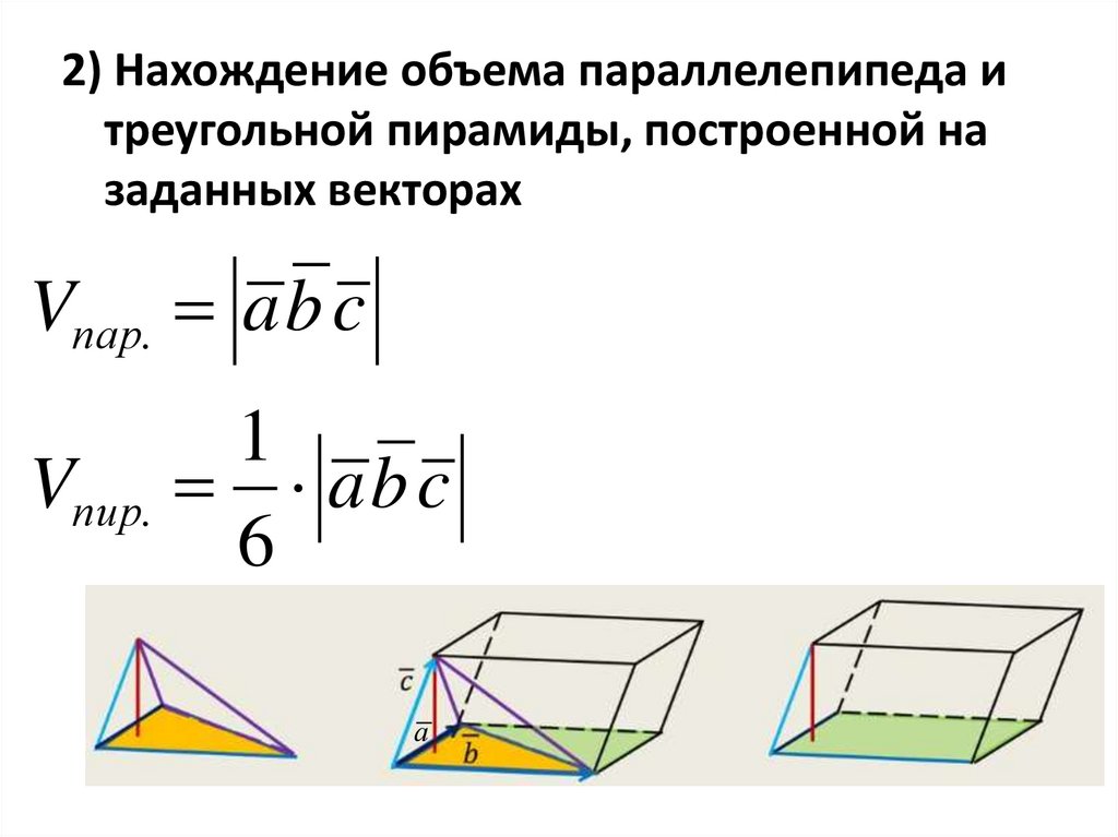 2) Нахождение объема параллелепипеда итреугольной пирамиды, построенной на