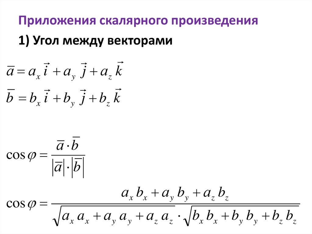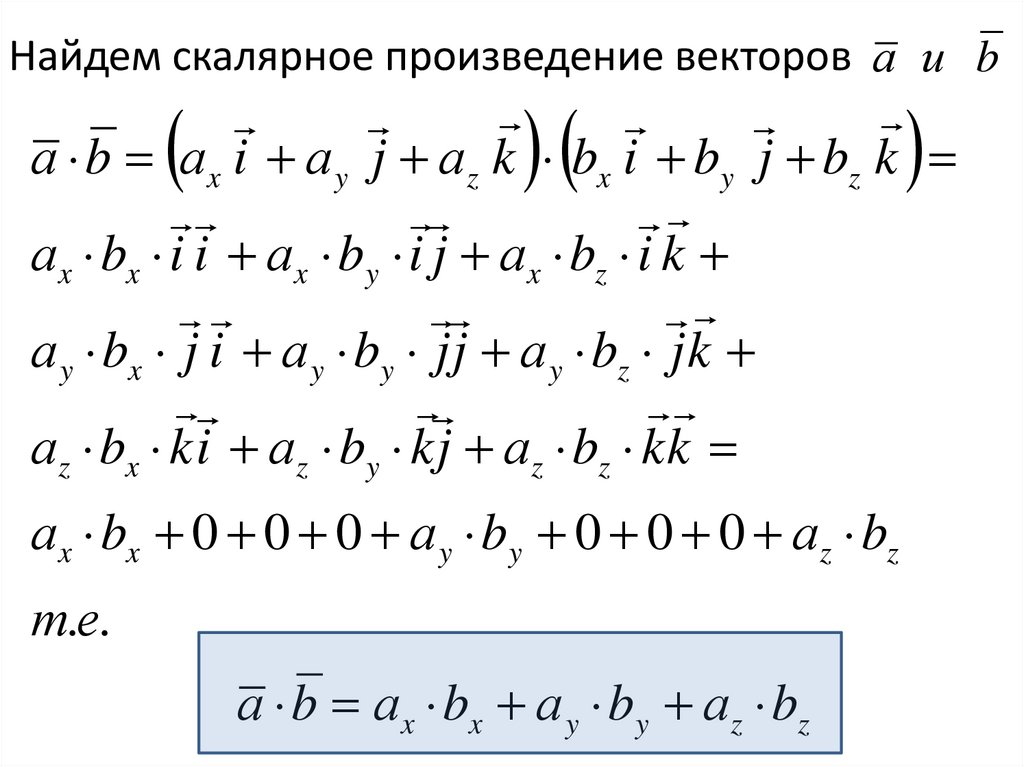 Найдем скалярное произведение векторов а и bа b а x i а y j а z k bx i by j bz k