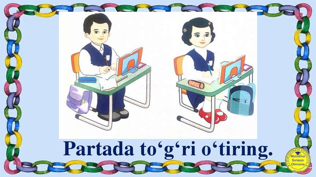 Partada to‘g‘ri o‘tiring.