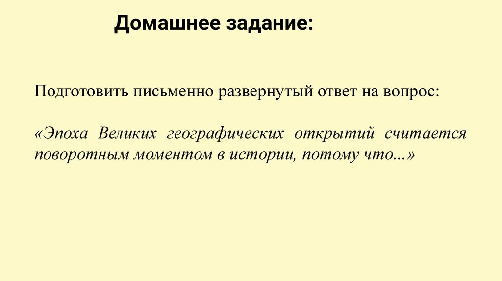 Домашнее задание:Подготовить письменно развернутый ответ на вопрос: