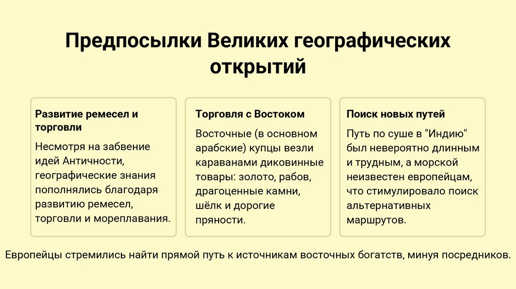 Европейцы стремились найти прямой путь к источникам восточных богатств, минуя посредников.