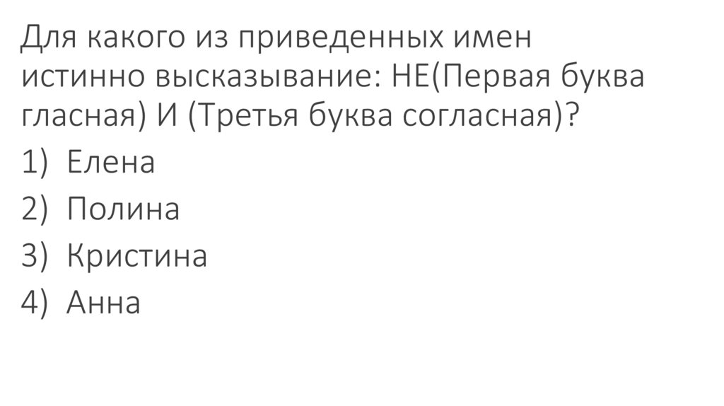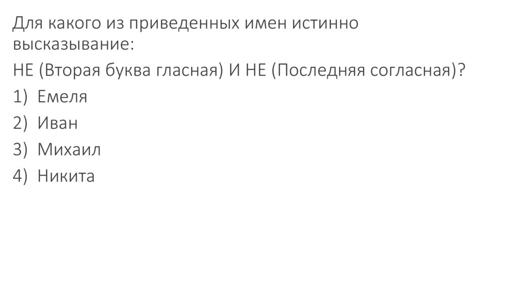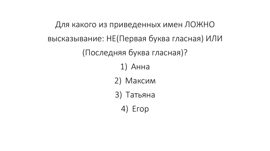 Для какого из приведенных имен ЛОЖНОвысказывание: НЕ(Первая буква гласная) ИЛИ