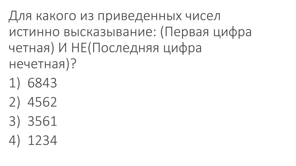 Для какого из приведенных чиселистинно высказывание: (Первая цифра