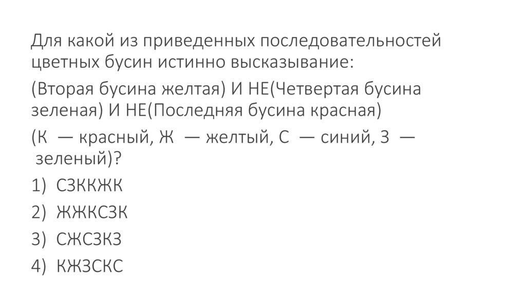 Для какой из приведенных последовательностейцветных бусин истинно высказывание: