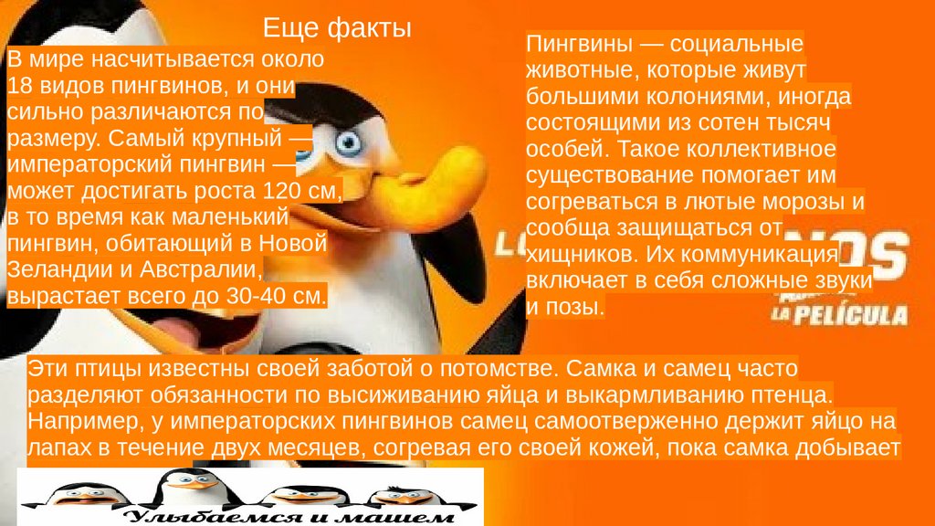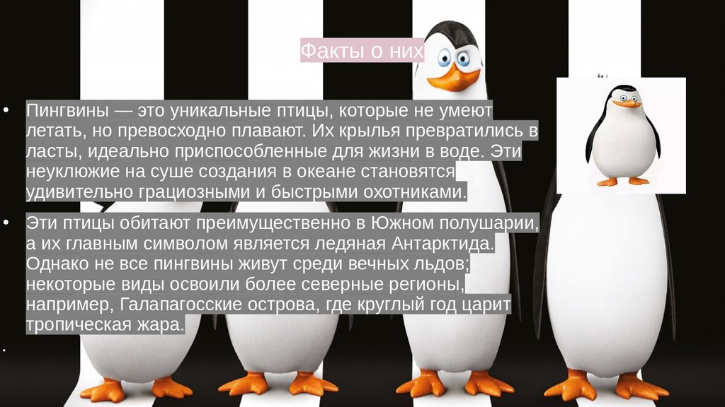 Факты о нихПингвины — это уникальные птицы, которые не умеют