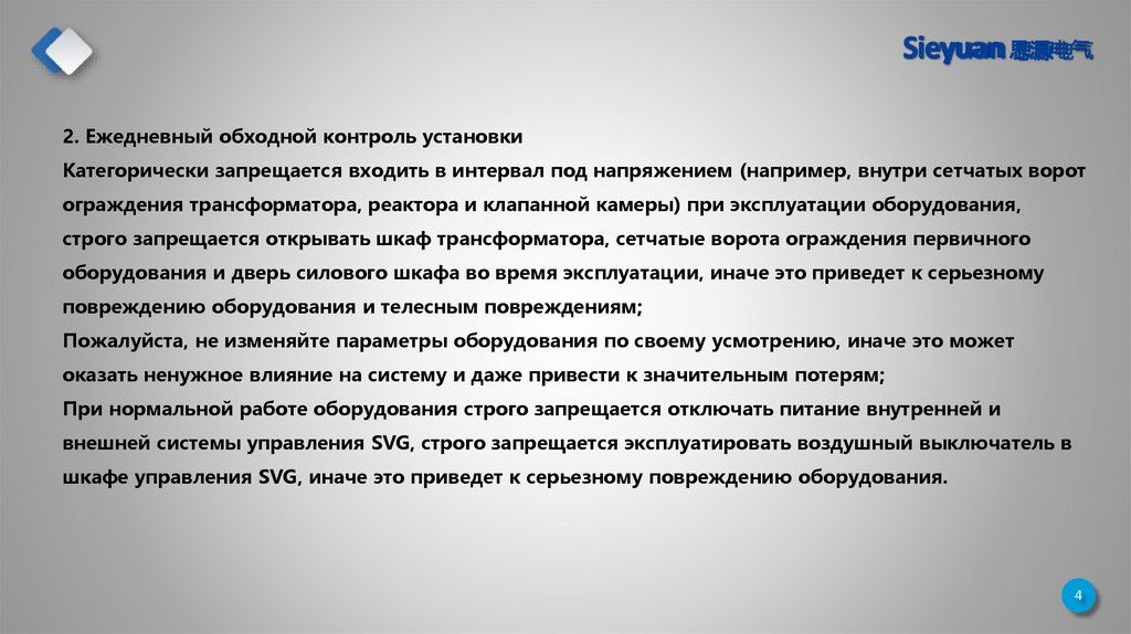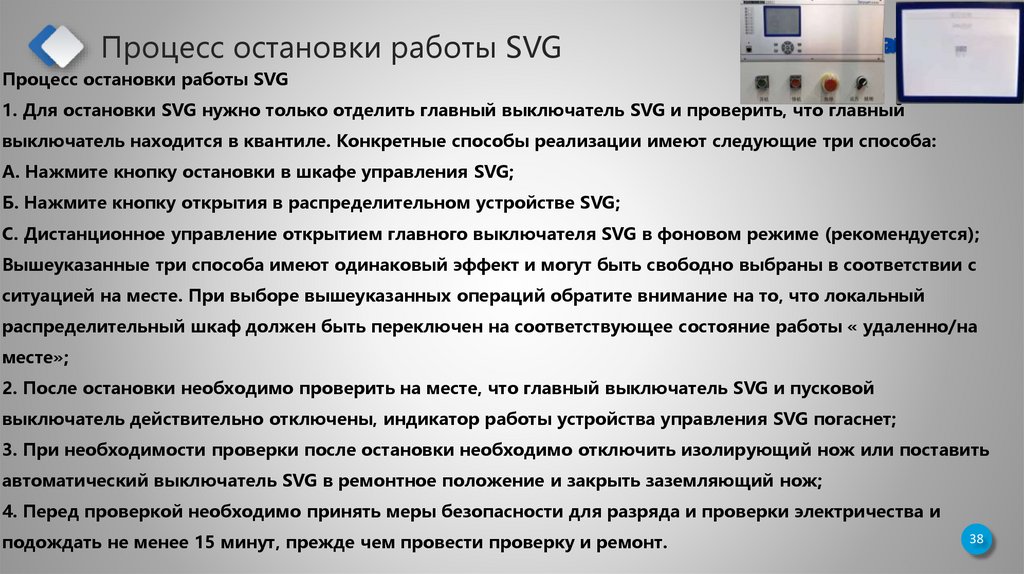 установки SVG должен управлять данной установкой, в противном случае это приведет к серьезным