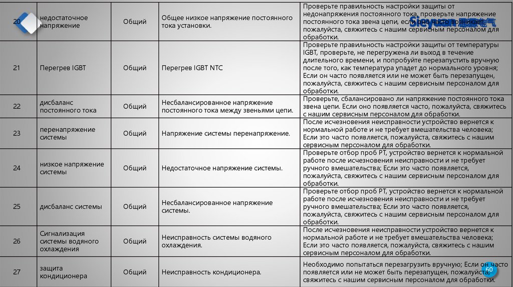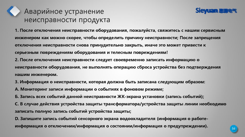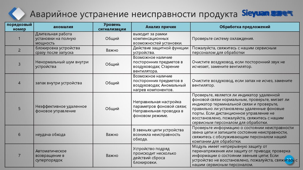 неисправности оборудования и аномалии другого оборудования. В целях безопасности строго