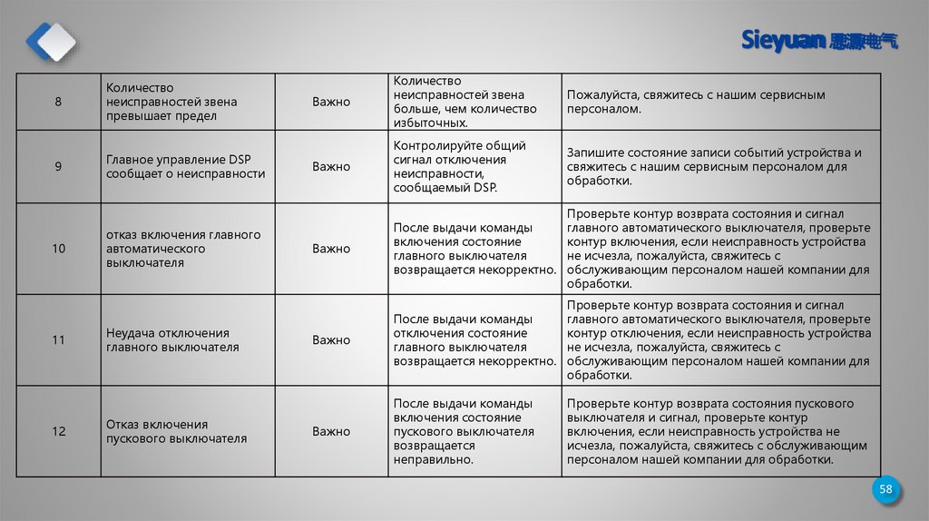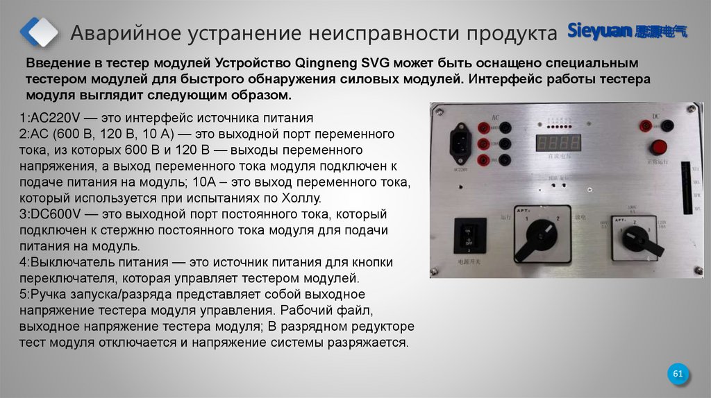 Заменные запасные части должны быть запасными частями, предоставленными Siyuan Qingneng Electric