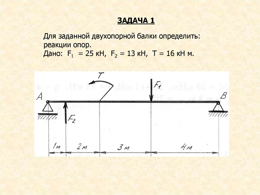 ЗАДАЧА 2Определить реакции опор двухопорной балки.