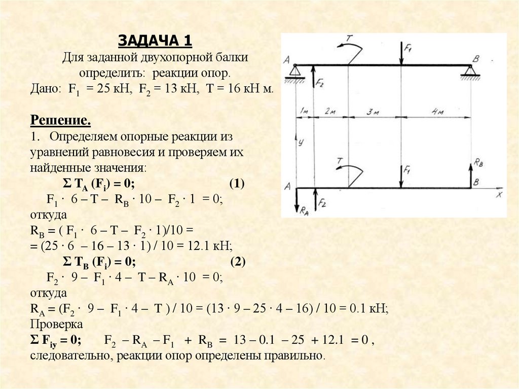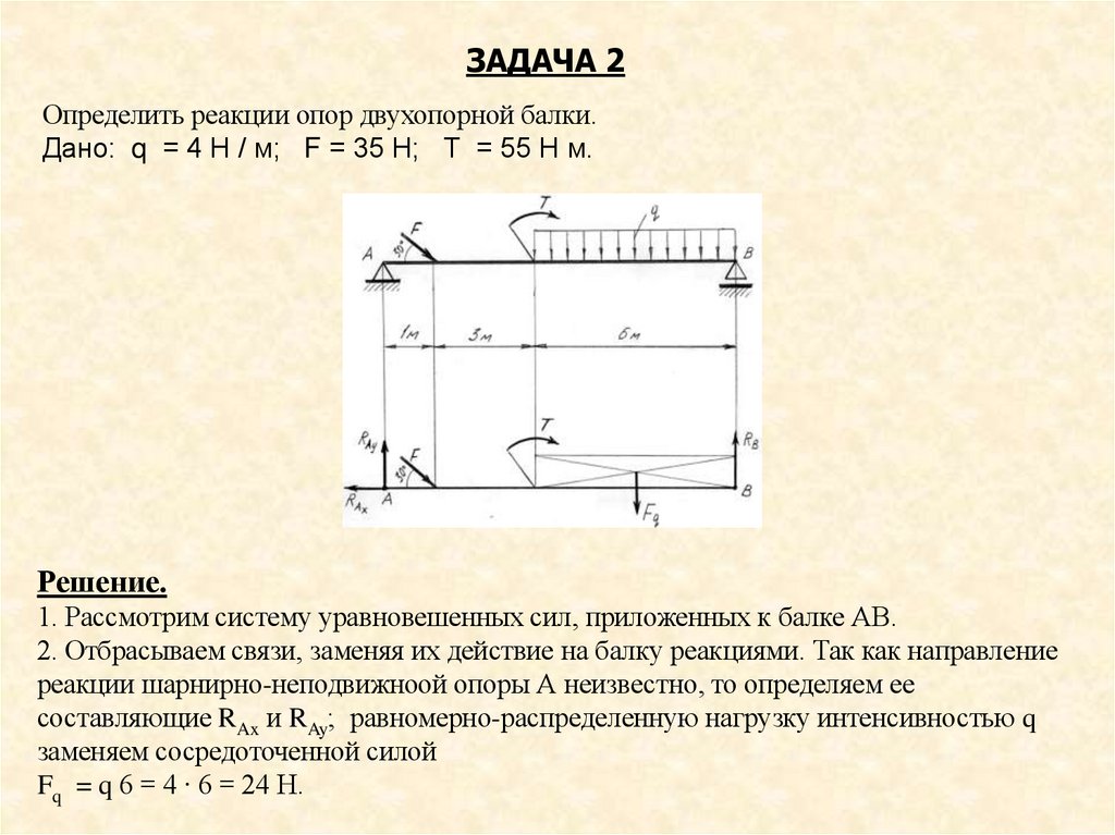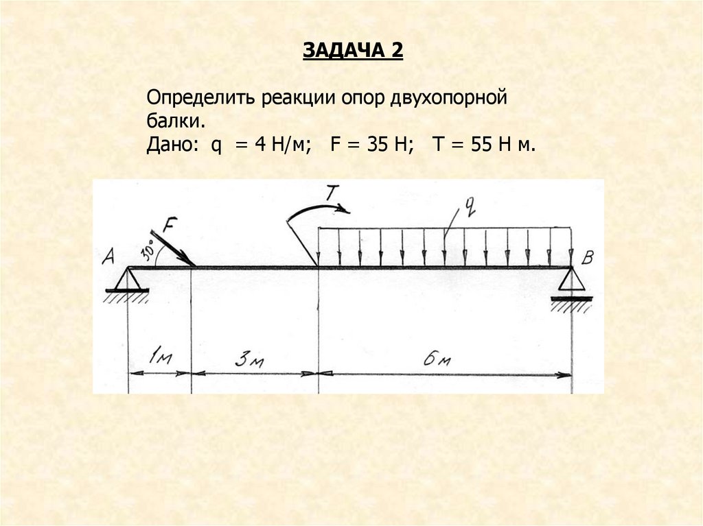 ЗАДАЧА 2Определить реакции опор двухопорной