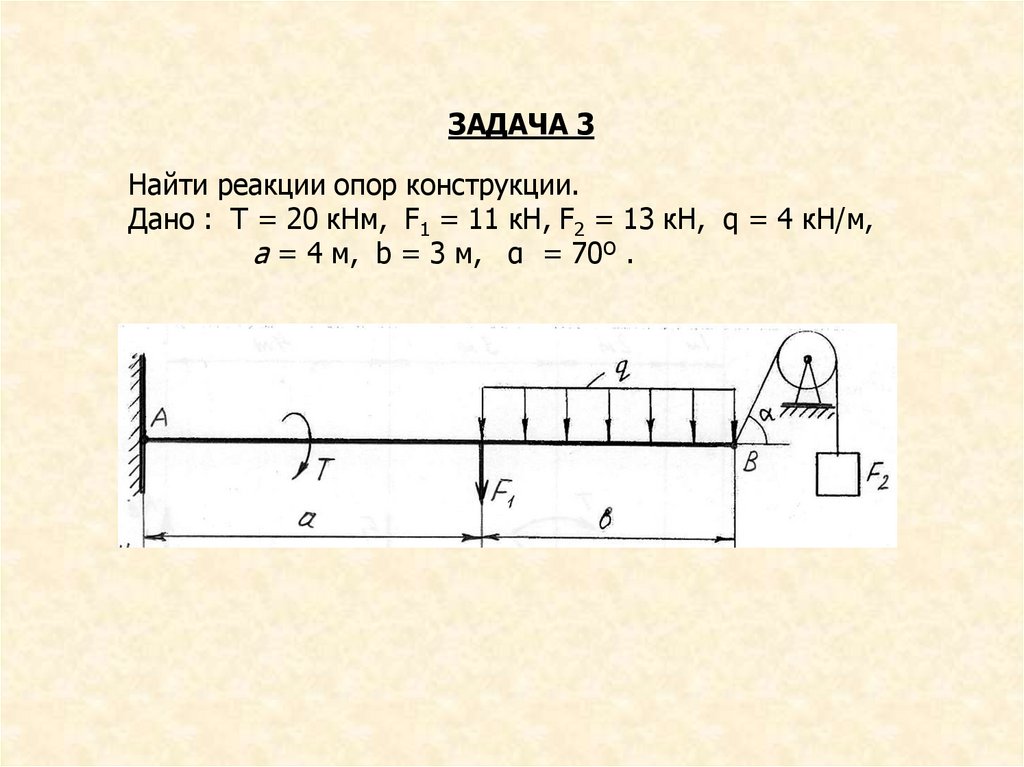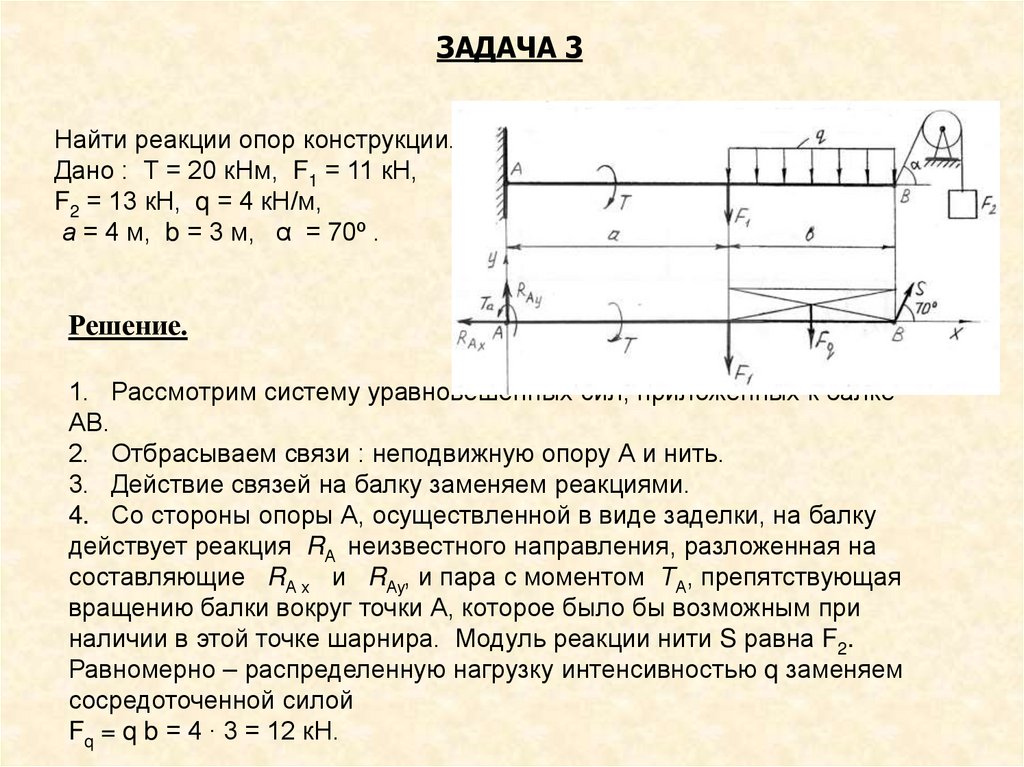 Дано: q = 4 Н / м; F = 35 Н; Т = 55 Н м.