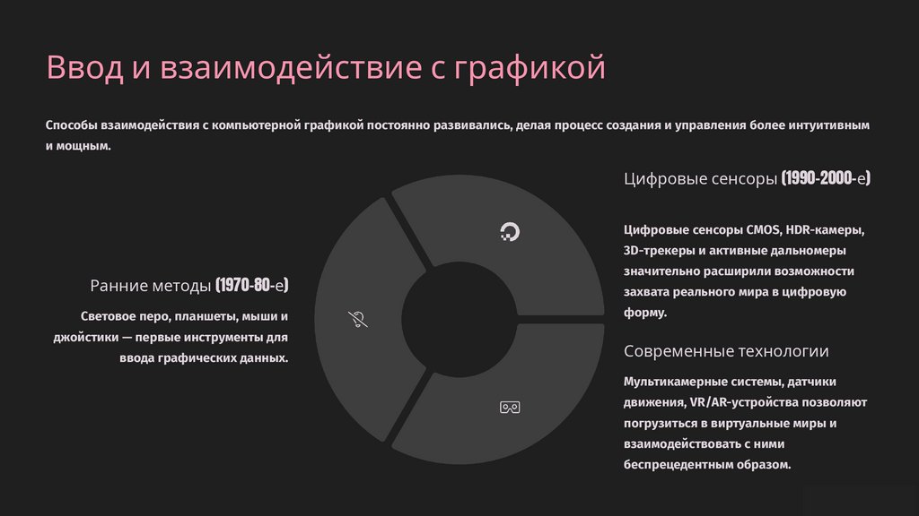 Ввод и взаимодействие с графикойСпособы взаимодействия с компьютерной графикой постоянно развивались, делая процесс создания и управления более интуитивным