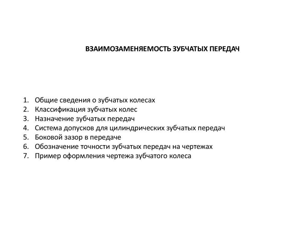 ВЗАИМОЗАМЕНЯЕМОСТЬ ЗУБЧАТЫХ ПЕРЕДАЧ1.