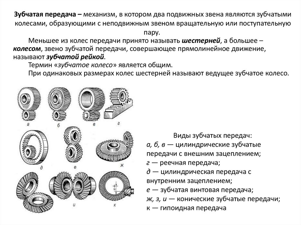 Меньшее из колес передачи принято называть шестерней, а большее –