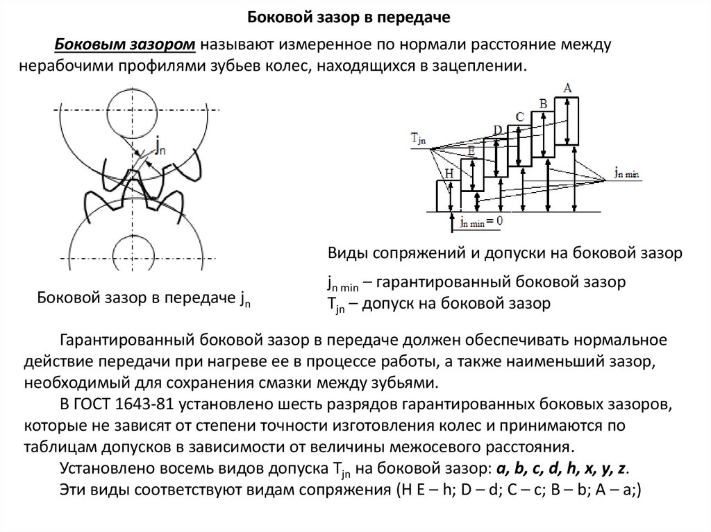 Гарантированный боковой зазор в передаче должен обеспечивать нормальное