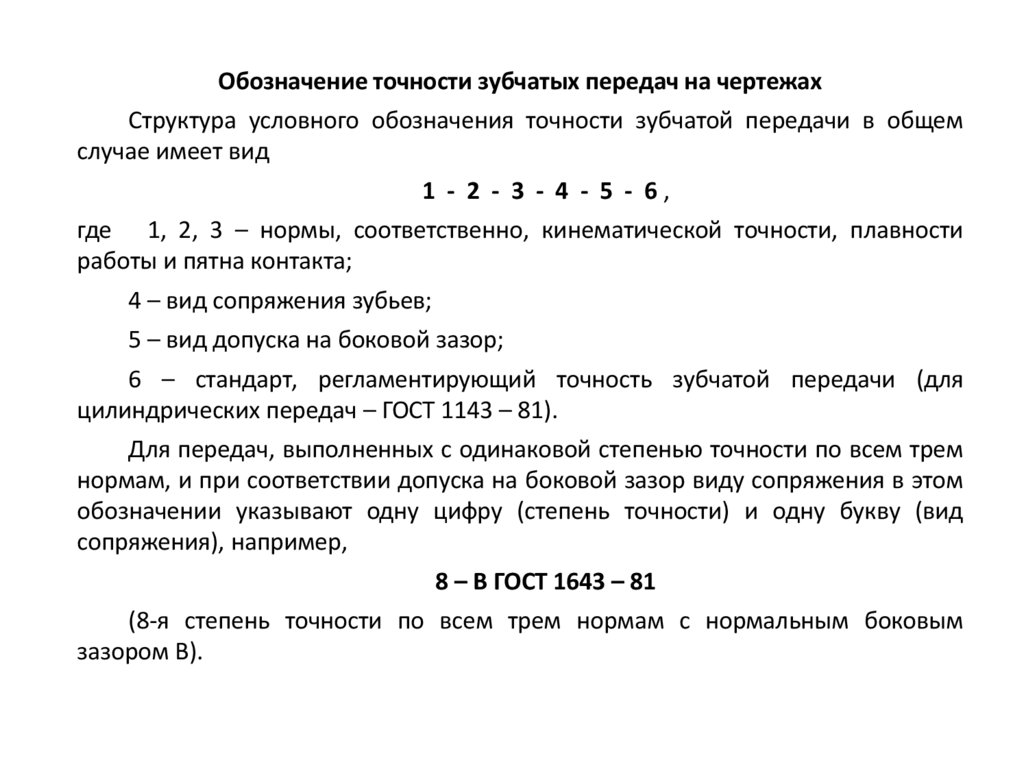 Обозначение точности зубчатых передач на чертежахСтруктура условного обозначения точности зубчатой передачи в общем